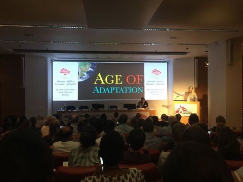 The keynote speech on climate change, environmental health and humanitarian aid was given by Adil Najam, Professor of International Relations and Earth & Environment at Boston University. He started off by saying that we were never supposed to get to age of climate change adaptation. We are only here because we failed at mitigation.