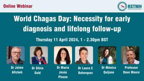 On Thursday 11 April 2024, 1-2:30pm BST, RSTMH will be hosting a webinar in honour of World Chagas Day. The focus would be around the theme: necessity for early diagnosis and lifelong follow-up of people affected by the disease. This webinar will feature a panel discussion from leading experts in the field of Chagas, Chaired by Dr. María Jesús Pinazo, physician, senior specialist in Internal Medicine and Head of Chagas in DNDi. Panellists announced so far include: