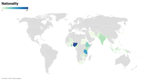 Our cohort of 2023 Grant awardees are from 30 countries, compared to 36 in 2022. Of these, around 85% are from Africa (70% in 2022), 14% were from Asia (10% in 2022). The country with the highest number of recipients is Uganda at 60, followed by Nigeria at 47.