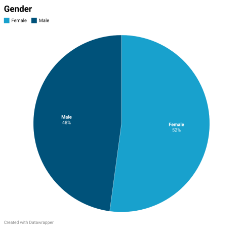 As you can see below our grants are being provided to a group which is 52% female, and 48% male, which is consistent with last year.