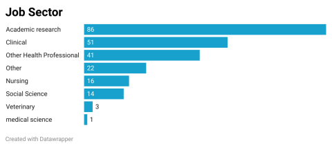 Similarly, we want our grants to be received by professionals working in all areas of health setting, and we can see below the breakdown for this cohort. As per last year, the vast majority of awardees are from academic settings, as we might expect for research grants. However, we are again delighted to see a number of awardees based in hospitals, NGOs, local government ministries and also industry. We continue to have big ambitions for the Programme to ensure the range of people given the chance to try research in global health is as broad as possible, to ensure the pipeline across the world is strengthened.