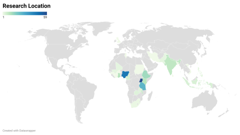 The research location of the studies being funded is equally broad, mapping closely the nationality of our awardees, as shown below.