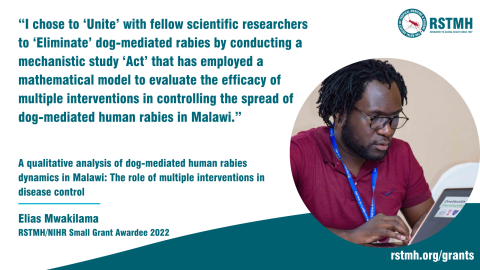 Although improved rabies surveillance or diagnostic systems and educating campaigns are widely advocated for to curb rabies globally, lack of secondary interventions such as homeopathic or pre-or PEP remedies in SSA to reduce chances of infection after human exposure leaves mass dog vaccination as the only option for African states. However, research suggests that efficacy of mass dog vaccination, combined with secondary interventions needs to be characterized further so as to provide relevant information for understanding disease dynamics and the development of policy measures. Thus, in line with the #WorldNTDDay theme, I chose to ‘Unite’ with fellow scientific researchers to ‘Eliminate’ dog-mediated rabies by conducting a mechanistic study ‘Act’ that has employed a mathematical model to evaluate the efficacy of multiple interventions in controlling the spread of dog-mediated human rabies in Malawi.