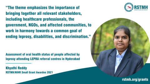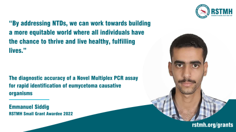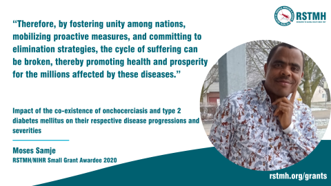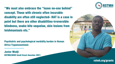I am passionate about fighting the so-called ‘diseases of poverty’ having experienced how dreadful it can be. That inspired my interest in researching NTDs. Thanks to the research grant from RSTMH/NIHR I am currently working on a study titled “Assessment of the burden of caregivers and barriers to accessing healthcare for persons with physical disabilities and NTDs.” The study aims to understand the challenges of NTDs not only from the perspective of the persons with lived experience but also to unravel its impact on close relatives and to understand how supporting the caregivers can improve the expected outcomes of combating NTDs.