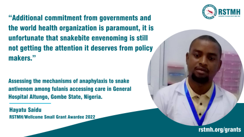 With support of the RSTMH early career grant, I have chosen to study the side effects of snake antivenoms. While antivenoms have proven their merit in saving lives, they have often been associated with side effects and even anaphylactic shock. Such reactions can be dangerous, particularly in an already envenomed patient. The cure should not be worse than the disease. But where is the boundary between cure and disease? Which symptoms are related to the effects of snake venom? And which symptoms are caused by antivenom? And are those symptoms due to anaphylaxis, as is commonly thought? To address this question, we want to study blood samples of patients experiencing side effects after receiving antivenom and see if they contain elevated levels of a marker that is indicative of anaphylactic reactions.