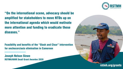 In view of the persistent transmission of onchocerciasis despite two decades of ivermectin mass drug administration in Cameroon, it became clear that alternative strategies were needed to achieve elimination. Previous vector control approaches made use of chemical larvicides with serious economic and environmental repercussions. I chose the “Slash and Clear” approach as it is a relatively cheap, community-owned and environmentally friendly strategy to destroy blackfly breeding sites, thereby accelerating onchocerciasis elimination. My research project confirmed that this approach is well accepted by the local community and feasible to the extent of accessibility of the breeding sites in a given onchocerciasis focus. Therefore, it has the potential to be scaled up across Cameroon and other endemic countries.