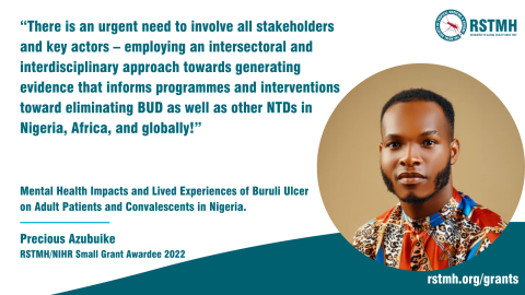 Although BUD is the third most prevalent mycobacterial illness in humans, after tuberculosis and leprosy, information is scarce in Nigeria about its epidemiology, management, and outcomes. Some outcomes resulting from the treatment and management of BUD include impacts on the physical and mental health of patients, patients’ belief that they are burdensome to their families and caregivers, and their inability to fully reintegrate into society due to the stigma and discrimination they face. My study seeks to generate evidence on lived experiences and psychosocial implications on BUD patients and convalescents to inform programmes that incorporate psychosocial management and follow-up of BUD patients and convalescents.