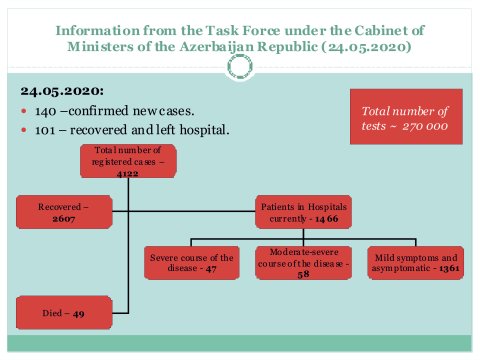 To date 270,000 tests in total have been completed. More than half of them were performed at the labs of the Center for Control of Particularly Dangerous Infections in Baku or its regional divisions.