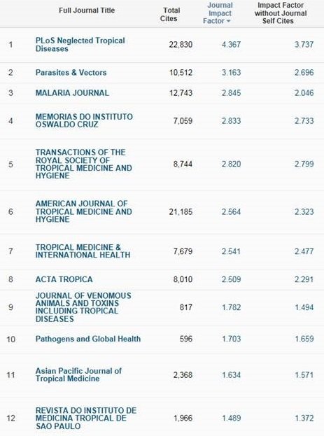 From sixth last year, Transactions is now in fifth position in the global Tropical Medicine category and is the highest ranked general tropical medicine title (see table below).